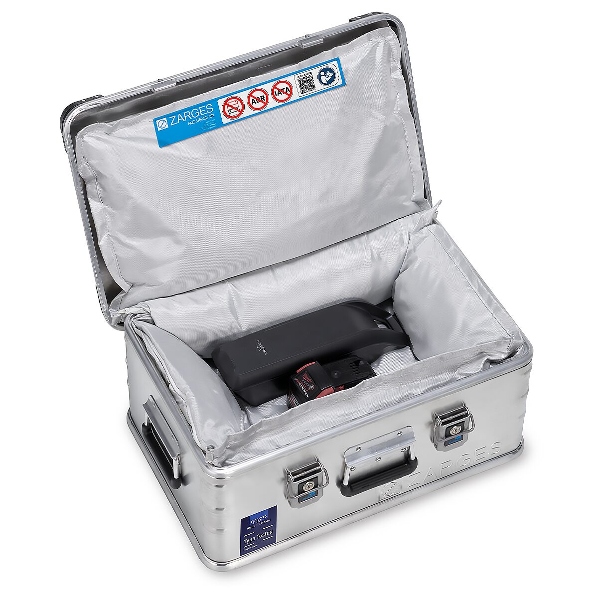 Tämä akkujen säilytyslaatikko eroaa isommasta akkujen säilytyslaatikosta kooltaan, ja siitä että tätä ei ole hyväksytty VAK kuljetuksiin, mutta tämä on kuitenkin hyväksytty TÜV NORD vaatimusten mukaan maksimissaan 814 Wh akkukapasiteetin säilyttämiseen. Zargesin testiprotokollaan mukaisesti tämä sopii koti- ja teollisuuskäyttöön, mutta ei varsinaisiin VAK kuljetuksiin esimerkiksi vaurioituneiden akkujen kuljetukseen. Mutta yksinkertaisesti sanottuna tämä on erinomainen ja turvallinen säilytysratkaisu yhden tai useamman akun säilytykseen silloin kun akkujen yhteenlaskettu kapasiteetti on maksimissaan 814 Wh.