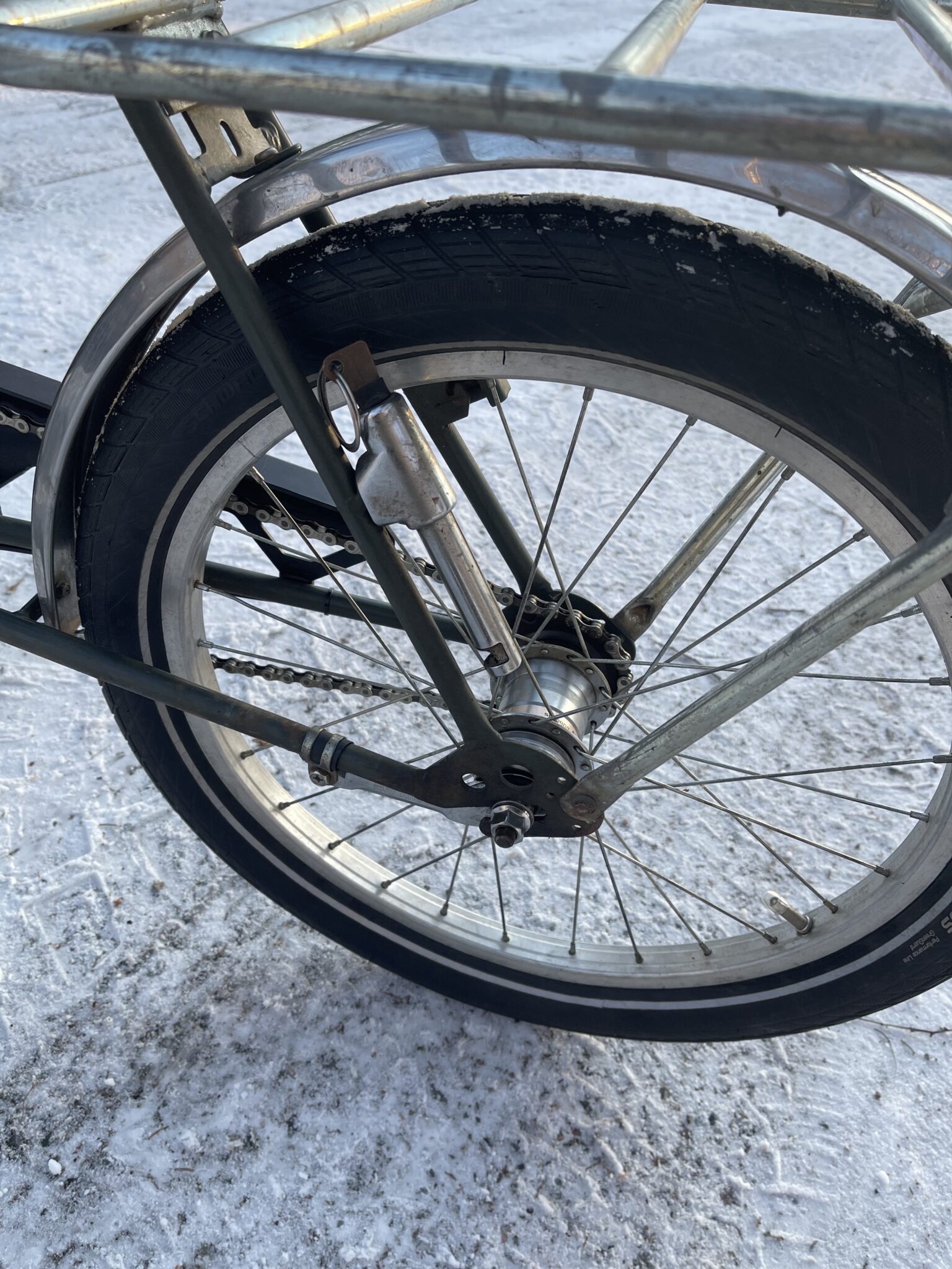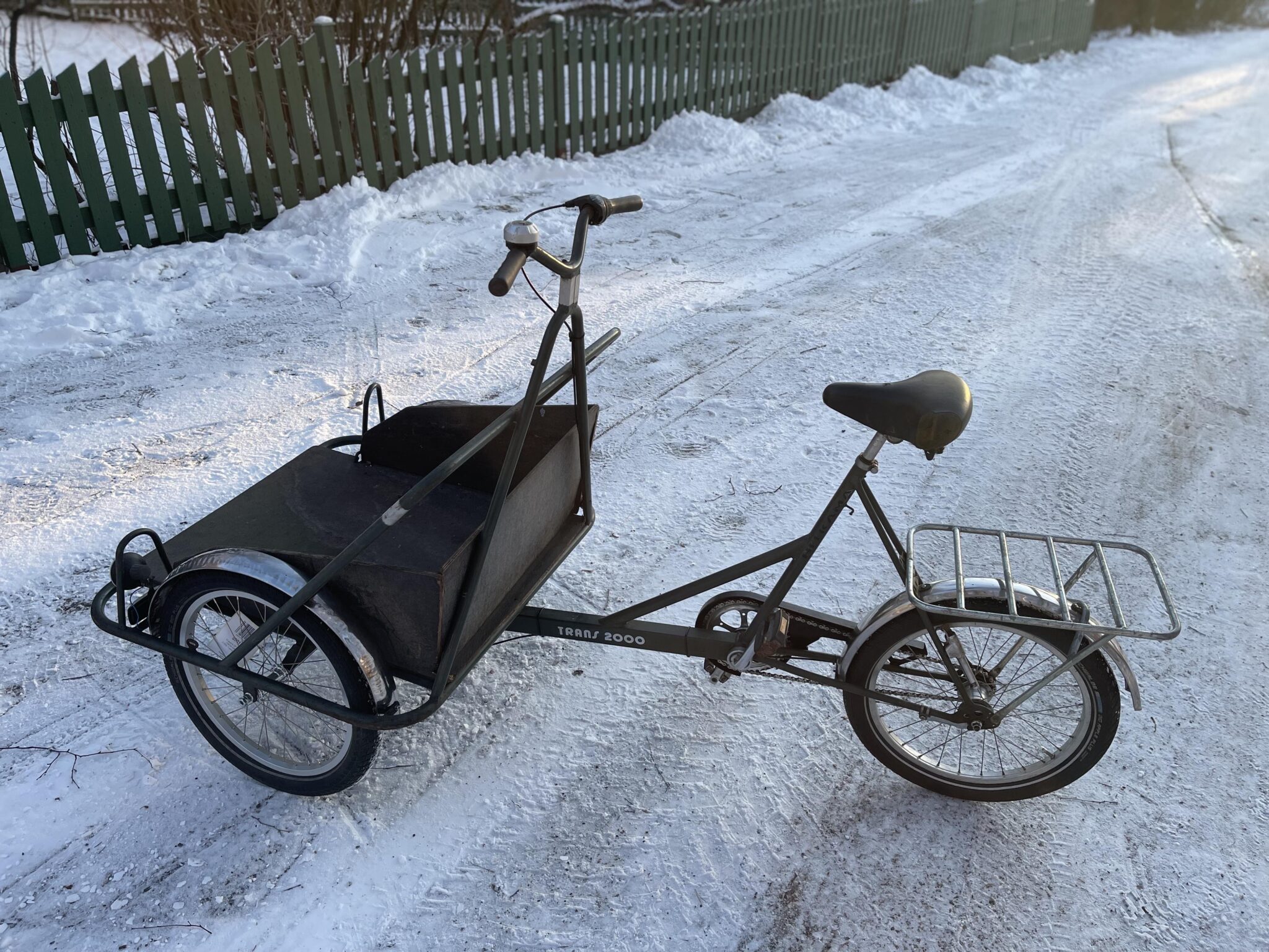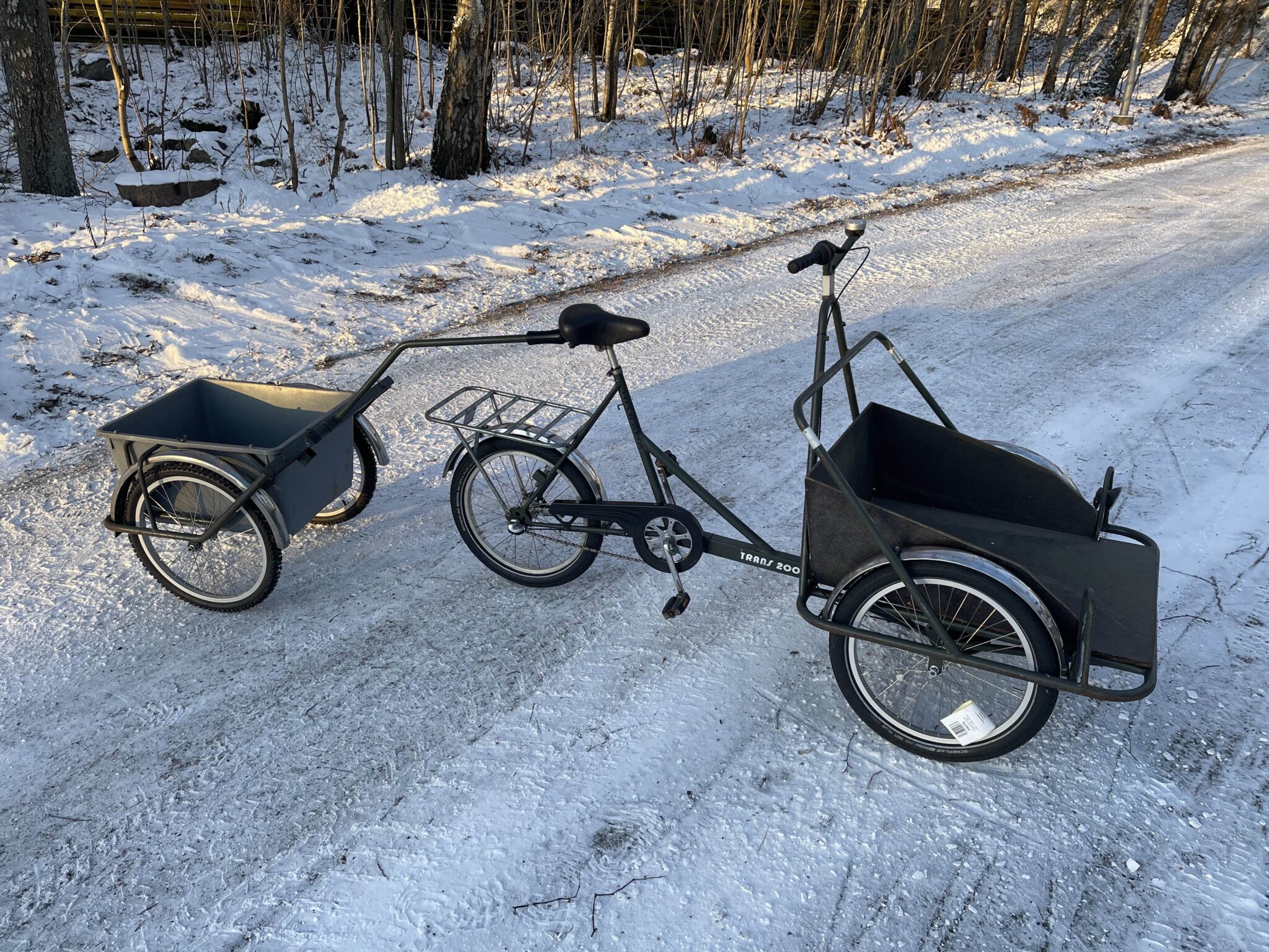Nyt olisi museoikäistä tavarapyörää tarjolla. Tornileima ja vuosiluku 83, ja suomalaista käsityötä. En koittanut tehdä uudenveroista, vaan sellaista että kulkee. Tässä on vain jalkajarru, joten en suosittele lastenkuljetukseen. Sen sijaan vaikka lyhyille kauppareissuille, siirtolapuutarhaan, venesatamaan, mökille tai missä nyt tarvitsetkaan kuljetuskapasiteettia. Uusin keskiölaakerin, etukiekot ja kärryn kiekot, ja kaikki renkaat joka uusia tai kelvollisessa kunnossa olevia käytettyjä. Vaihdevaijerit, kello ja kiertovaihtaja (3v) uusittu. Tyyliin olisi sopinut paremmin vipuvaihtaja, mutta jos tuon haluaa vaihtaa niin se on helppoa. Kuvassa näkyvä vanerilava on aika pehmoinen, joten vaatii kunnostuksen tai vaihdon muovilaatikkoon. Etrasta löytyy. Edessä on vanha halogeenivalo, ja huomasin että olisi siinä paikka pullodynamollekin, jos haluaa etuvalon toimintaan kuten se on ollut valmistuessaan. Satulatolppa on nihkeä liikkeissää, liikkuu/pyörii, mutta ei oikein halua mennä ylös tai alas. Kärry on myös Helkaman, ja aika kätevä tuollaisenaan ostosten, polttopuiden tai multasäkkien kuljettamiseen. Kiinnittyy satulatolppaan tai muuhun kiinnikkeeseen, mutta toimii hyvin käsikärrynä. Harrastushommiksi meni, joten laitetaan edullisesti eteenpäin. 440€ tässä kunnossa kaikkineen tai 350€ pyörä ja 90€ kärry. #helkama #tavarapyörä #konttipyörä #peräkärry